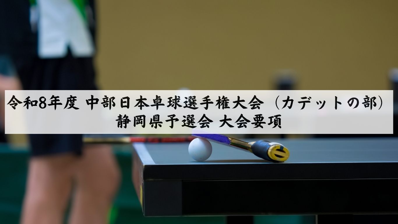 中部日本(カデット以下)静岡県予選会のご案内6月13日(土)に開催されます令和8年度 中部日本卓球選手権大会(カデットの部)静岡県予選会の大会要項を掲載いたしました。 多くの選手の皆さまのご参加を心よりお…