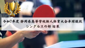 12月23日(火)~25日(木)に行われた第53回全国高等学校選抜卓球大会東海選考会 兼 令和7年度東海高等学校新人卓球大会および1月17日(土)に行われた令和7年度 静岡県高等学校新人体育大会卓球競技 シングルスの部の結果を掲載いたしました。