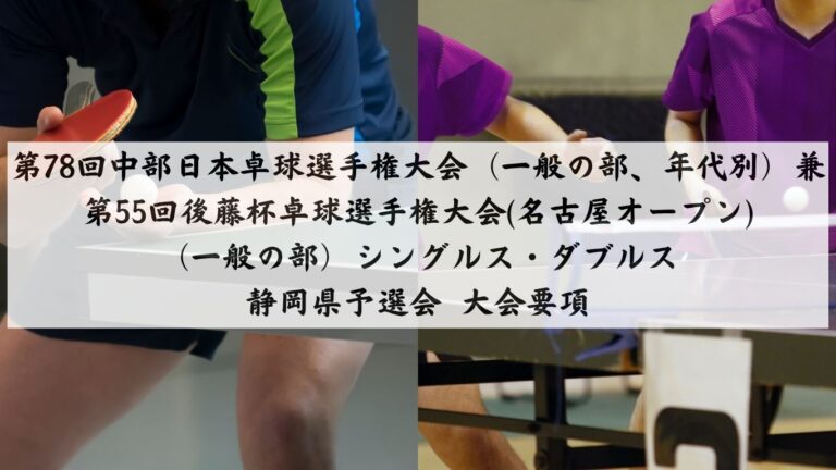 第78回中部日本卓球選手権大会(一般の部、年代別)兼第55回後藤杯卓球選手権大会(名古屋オープン)(一般の部)シングルス・ダブルス県予選会