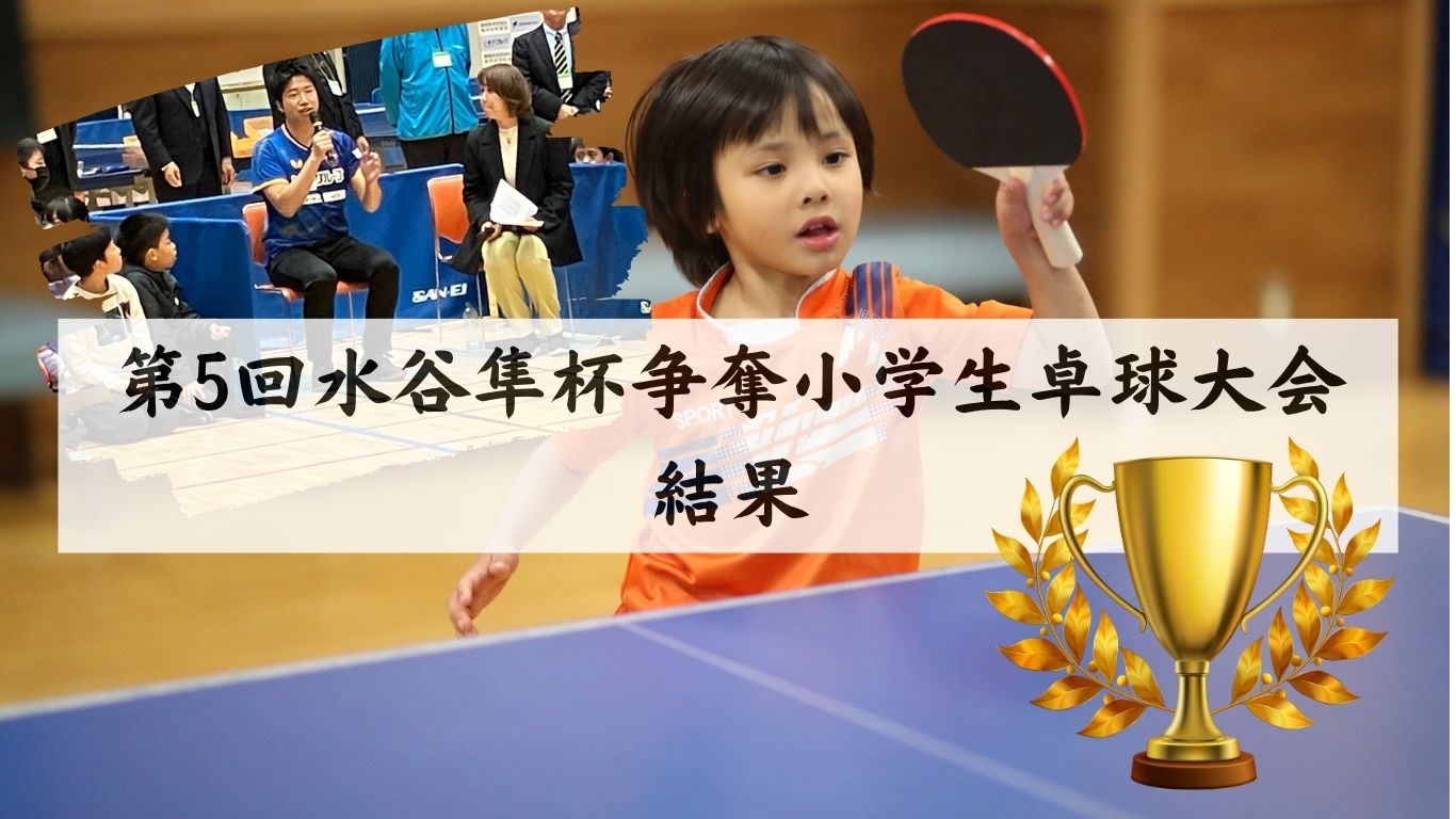 令和5年2月4、5日の2日間にかけて行われた第5回水谷隼杯争奪小学生卓球大会の結果です。