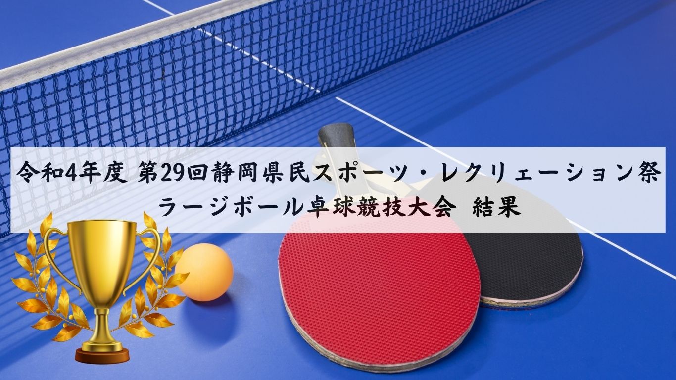令和絵年5月7日に掛川さんりーなで行われた令和4年度 第29回静岡県民スポーツ・レクリェーション祭ラージボール卓球競技大会の結果です。